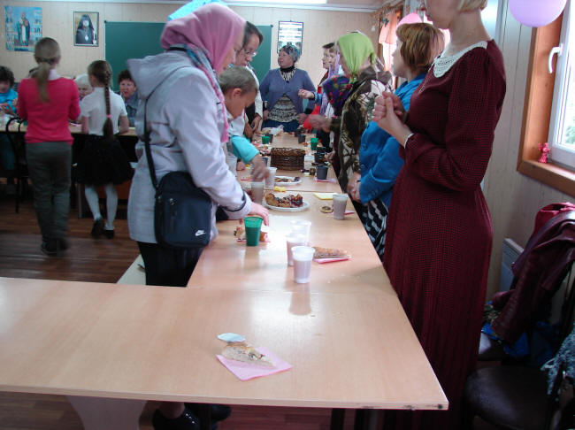 присутствующих пригласили в здание школы, где были накрыты