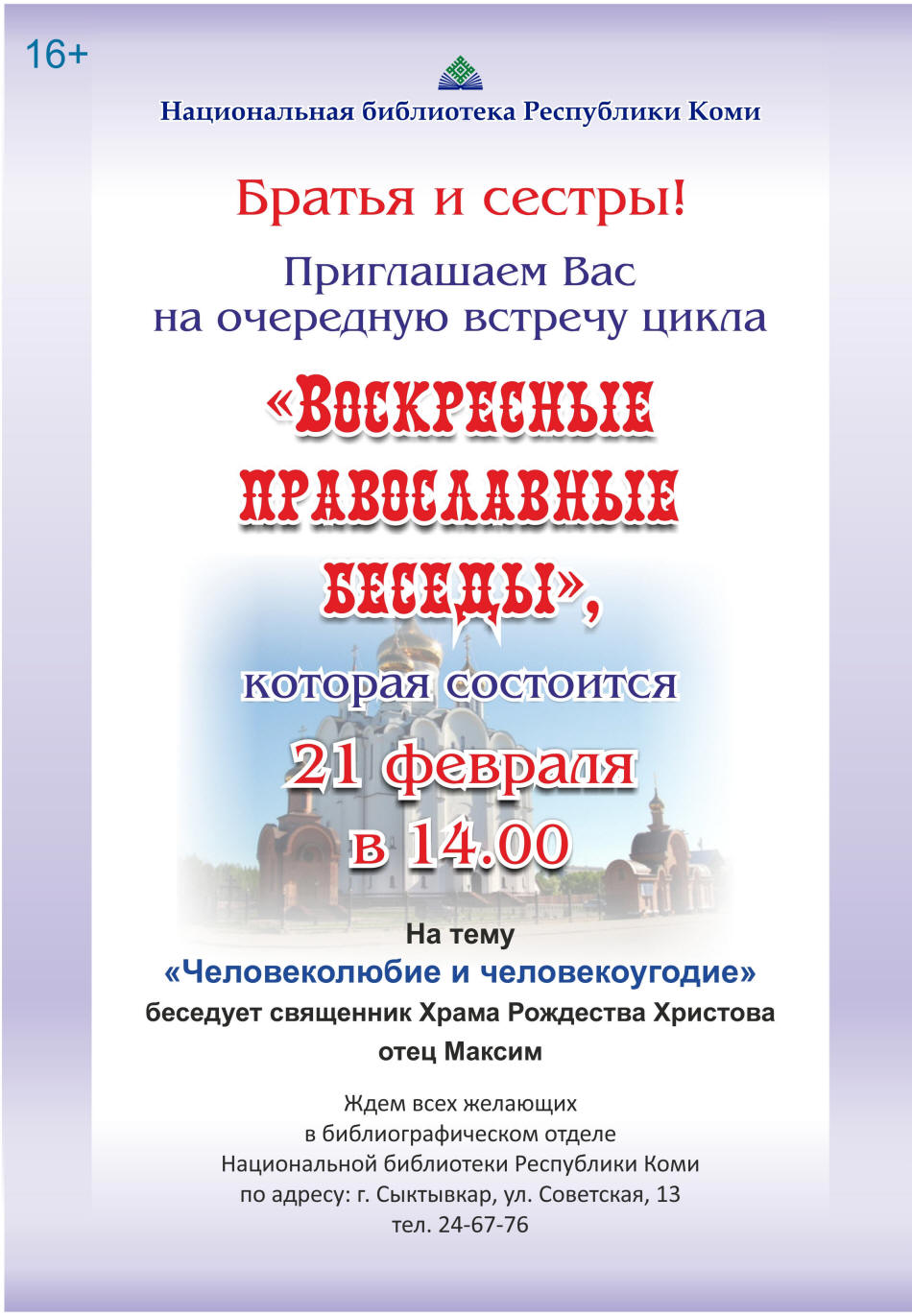21 ФЕВРАЛЯ. ВОСКРЕСНЫЕ ПРАВОСЛАВНЫЕ БЕСЕДЫ.