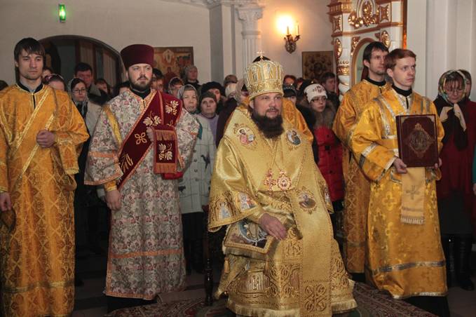 Питирим, епископ Сыктывкарский и Воркутинский, в сослужении духовенства,